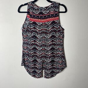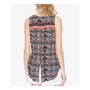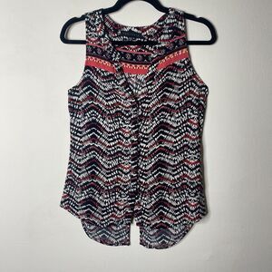 Sanctuary Sleeveless Black Tribal Chevron Print Split Neck Button Down Tank