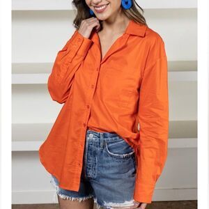 Sanctuary slit back button up v-neck long sleeve tunic top blouse shirt cotton