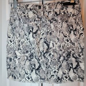 Chic snakeskin print mini skirt. Features a stylish button closure.