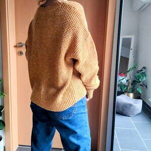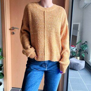 Sanctuary Sorry Not Sorry Yellow Waffle Knit Long Sleeve Crew Neck Sweater XS