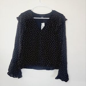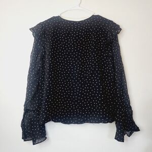 Sanctuary Spice of Life mini polka-dot ruffled long sleeve blouse size small