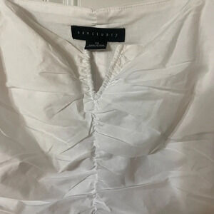 Sanctuary Split Square Neck Short Puff Sleeve Shirred Poplin Mini Dress size 12