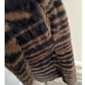 Sanctuary Statement Faux Fur Coat with Pockets Zebra Stripe Brown and Black Size Small