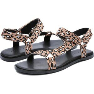 Sanctuary Sway Strappy Ankle Flat Sandals Size 8 Leopard Print