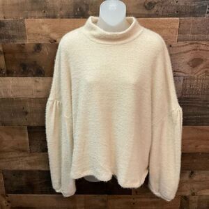 Sanctuary Sweater Funnel Neck Drop Shoulder in Tan Oatmeal with Balloon Sleeves Pullover in Women Size 1X Winter Casual Comfortable Cozy Ski Resort