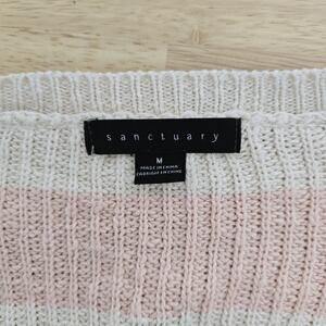 Sanctuary Sweater Womens Medium Pink White Striped Knit Pullover Crewneck Cotton