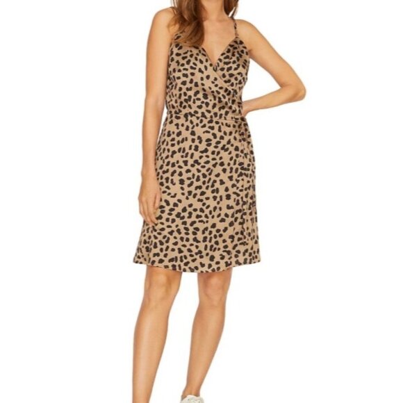 Sanctuary Tan & Black Animal Print Wrap Sheath Mini Dress Size Small