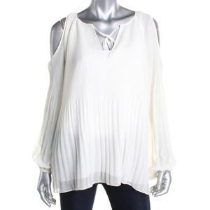Sanctuary Textured Cold Shoulder Pleated Blouse