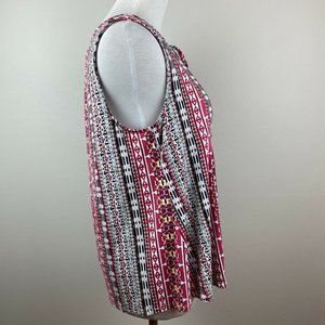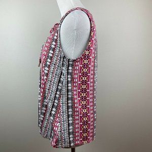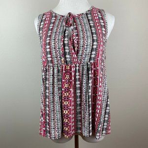 Sanctuary Top Womens Small Tank Tribal Printed Self Tie V-Neck Multicolor New