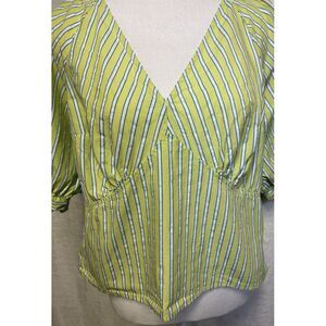 Sanctuary V Neck Cotton Poplin Top in Green Energy Stripe Size L