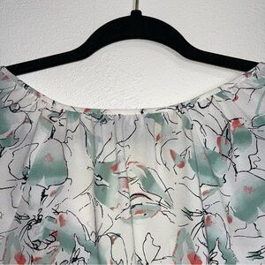 Sanctuary White & Mint Green Floral Print Split Neck Blouse Small Women’s