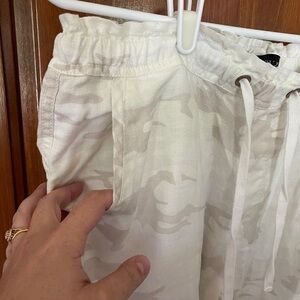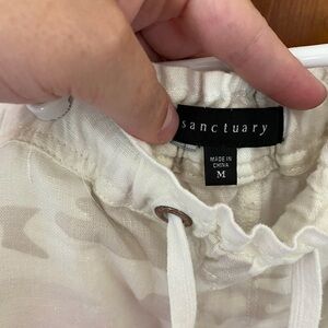 EUC pair of 100% linen jogger pants from Sanctuary in a size medium. These pants are in a camouflage pattern in colors of white and tans. Drawstring waist. No stains or flaws!