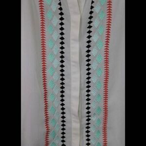 Sanctuary White Medium Sleeveless Top w/ turquoise, peach-ish black stitch