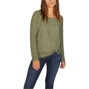 Sanctuary Wmn's Tee Cadet Green Long Sleeve Knotted Front Space-dye Twist Top XS