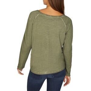 Sanctuary Womens Tee Green Long Sleeve Knotted Front Cotton Blend