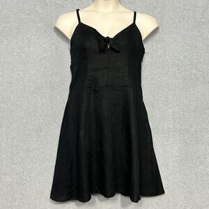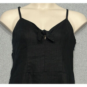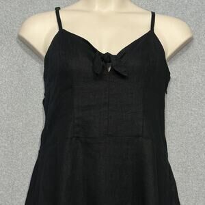 Sanctuary Women Dress 14 Take Away Black Linen Tie Keyhole Smocked Beachy Casual