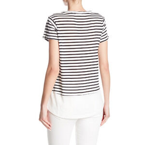 Sanctuary Women Striped Split Neck T-Shirt White Size L