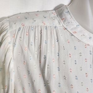 Sanctuary Women Top Small White Evelyn Clip Dot Blouse Rainbow Button 3/4 Sleeve