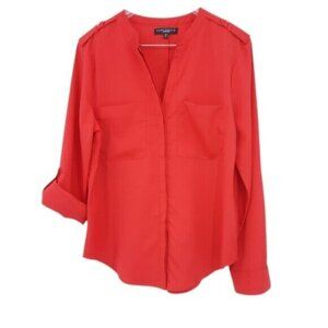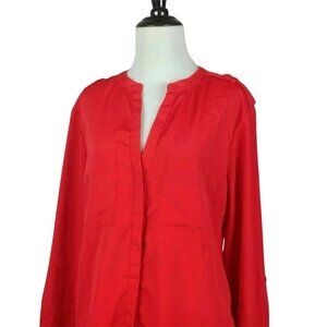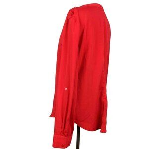 Sanctuary Womens Blouse Top Red XS Boyfriend Hidden Button Roll Tab Sleeve