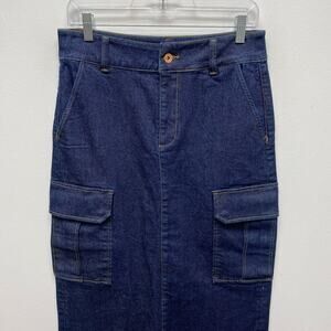 Sanctuary Womens Blue Denim Back Slit Essential Slim Straight Cargo Midi Skirt 4 ( Sanctuary size 27 )