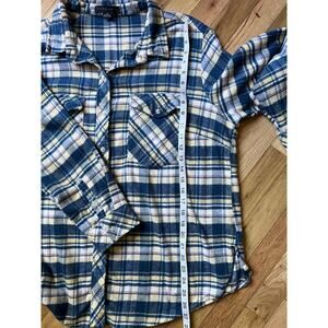 Sanctuary Womens Cozy Blue Plaid Flannel Boyfriend Button Up Shirt Plus Sz 1X