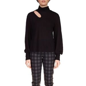 Sanctuary Women's Cutout Mock Neck Top Black, pullover sweater XS size 2