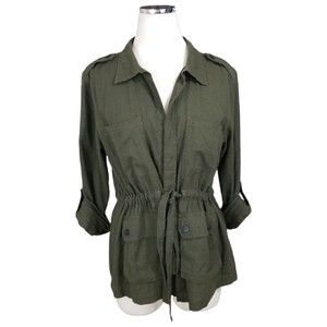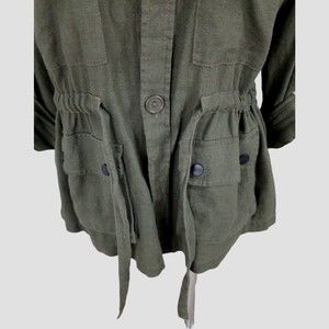 Sanctuary Women's Day Trip Cropped Linen Jacket Military Olive Green Medium