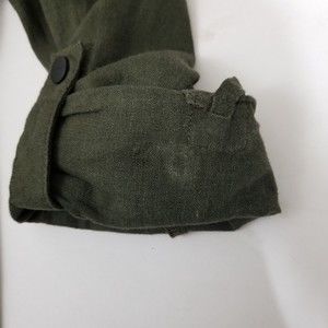 * Small pulled thread on upper arm and slight wear from inner button. If cuff is rolled high flaws can be hidden and when worn long it is on the inside of arm.