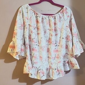 Sanctuary Women's Floral Pink & Beige Bottom Ruffle Blouse, Size: M
