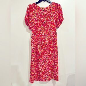 Sanctuary Women's Floral Puff Sleeve Midi Dress Red, Sunset Bloom size 4
