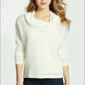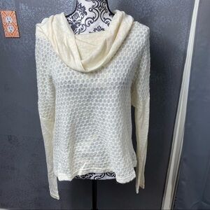 Sanctuary “winter white” which is a cream color honeycomb knit sweater with cowl neck. Long sleeve. Soft 80% acrylic 20% nylon shell with 45% rayon, 55% polyester contrast. Size XL