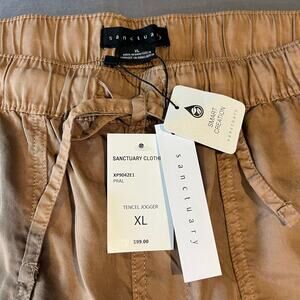 NEW Sanctuary Tencel Jogger in Praline. Pull on, flat front patch pocket with drawstring and elastic waist. Back pockets with snaps. Cuffed elastic at ankles. Please see all photos. Thank you!