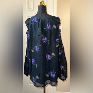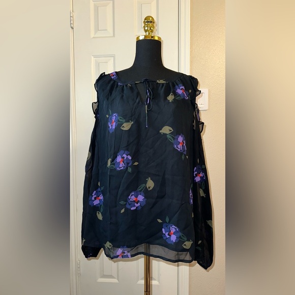 Sanctuary Women’s L Black Floral Cold Shoulder Blouse Long Sleeve Keyhole Boho