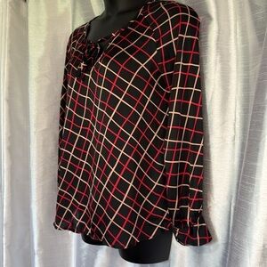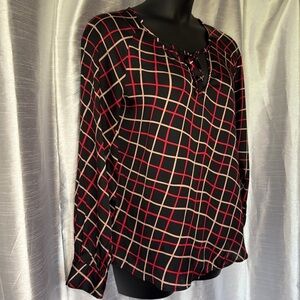 Sanctuary Women’s Large Black Red Pink Keyhole Tie Neck Long Sleeve Blouse