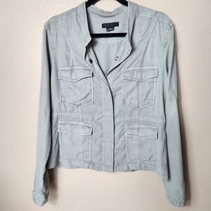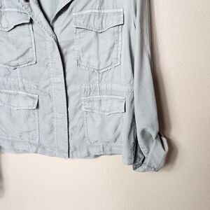 Sanctuary Womens Military Green Tencel Roll Tab Sleeve Utility Jacket-Size M