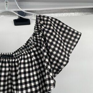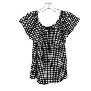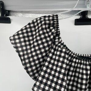 Sanctuary Womens Off Shoulder Top Black/White Check Short Sleeve Size Small