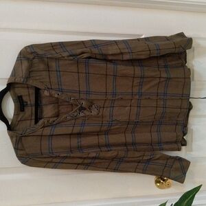 Sanctuary Women's Olive Green Plaid Lace Front Top Size Medium