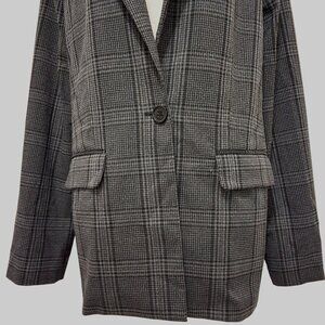 Sanctuary Womens One-Button Gray Plaid Blazer Two Front Flap Pockets Size 8