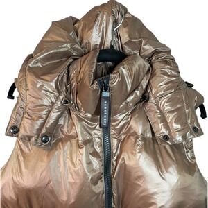 Sanctuary Womens Puffer Up Hooded Vest Recycled Nylon Bronze Shiny Sleeveless