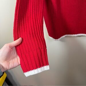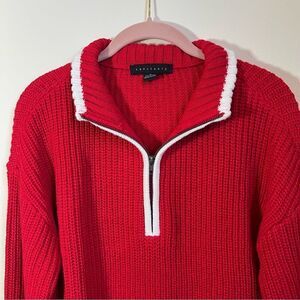 Sanctuary women’s red quarter zip sweater with white detailing.