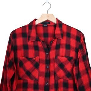 Sanctuary Women's S Red and Black Plaid Button Down Shirt