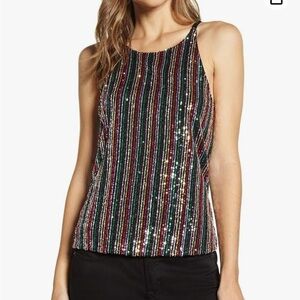 Sanctuary Womens Sequined Party Tank Top Black Size Small