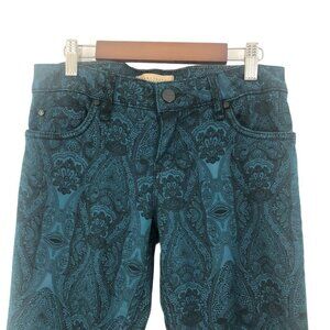 Sanctuary Womens Size 26 Teal Black Paisley Print Skinny Jeans