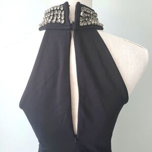 Sanctuary women's black dress with clear embellishments on neck line. Sleeveless. Key Hole back. Size XS. Like new. No tears or stains. 59% Rayon 36% nylon 6% elastane.