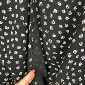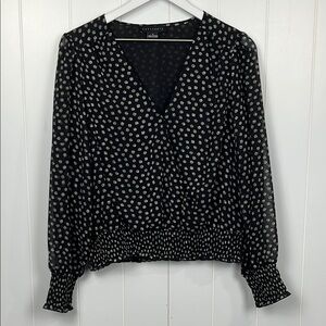 Sanctuary Womens Surplice Top M Black Daisy Print Long Sleeves Pullover Sheer Smocking at Waist & Cuffs Classy Pretty Lightweight EUC