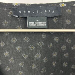 Sanctuary Womens Surplice Top M Black Daisy Print Pullover Smocking Sheer Classy