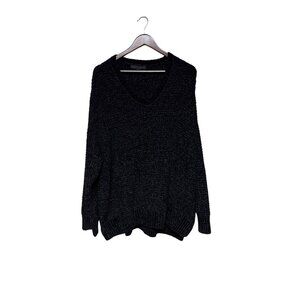 Sanctuary Women's Sweater Chenille Ribbed V-Neck Midnight Black Plus Size 3X NEW