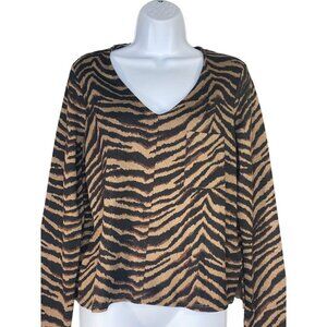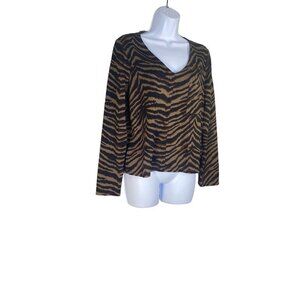 Sanctuary Womens Tiger Stripes Animal Print V-neck Shirt Size Small