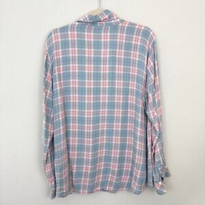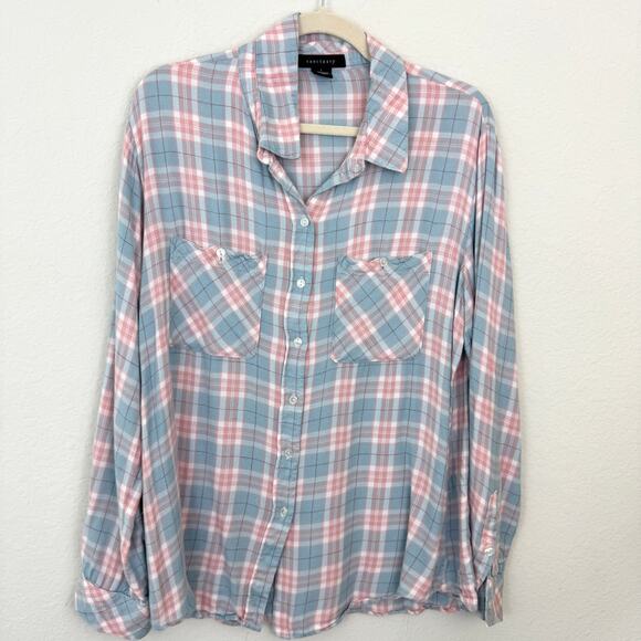 Sanctuary Womens Tomboy Shirt Size L Plaid Pastel Flowy Button Front Pink Blue