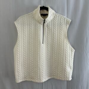 Sanctuary Womens White Cable Knit Sleeveless Quarter Zip Top Size Large